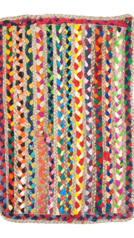 Alfombra de tejido y yute trenzados hecha a mano. La combinación de colores puede variarMedidas: 62 x 42 x 1 cm Peso: 685 g