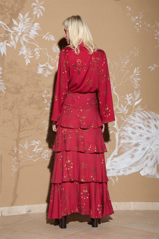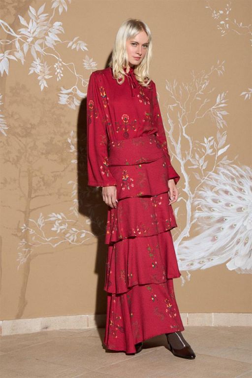 Blusa cuello MAO con cierre de lazo en la misma tela