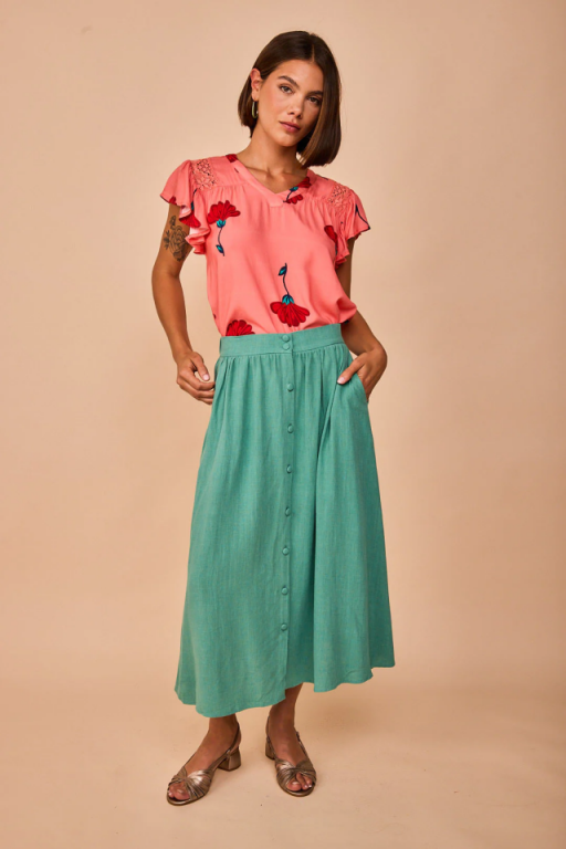 Camisa de corte fluido, con escote en pico y mangas cortas