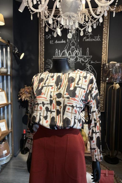 Camiseta de manga larga con dibujo de figuras abstractas.