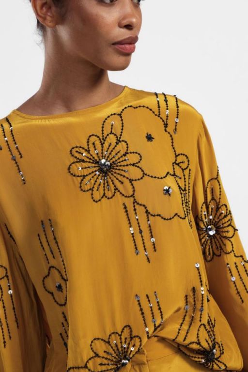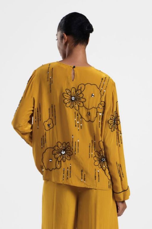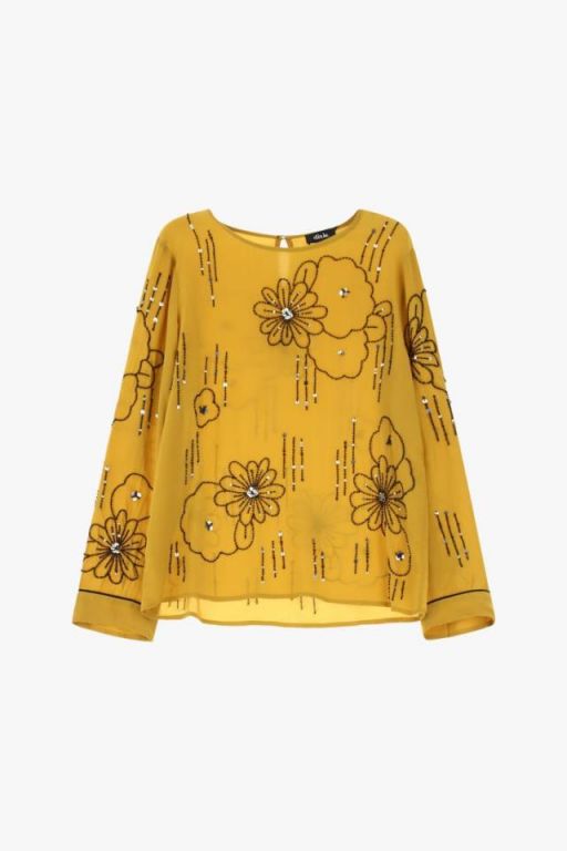 Camisa de estampado floral de mangas largas y cuello redondo.