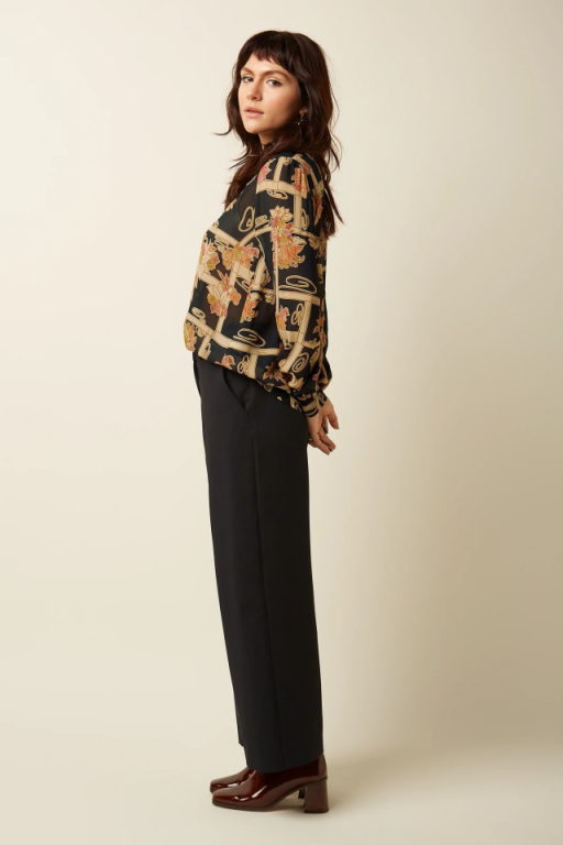 La blusa Maisie Alba presenta un cuello clásico con lazo. Confeccionada en viscosa tejida semitransparente, luce un estampado floral, mangas largas y cierre de botones. Su tejido sin elasticidad proporciona un ajuste cómodo y a la vez estructurado.