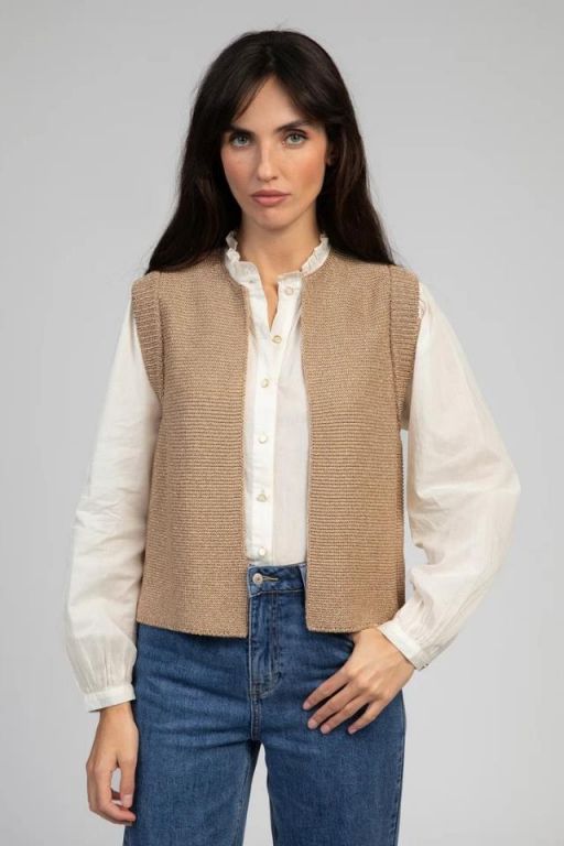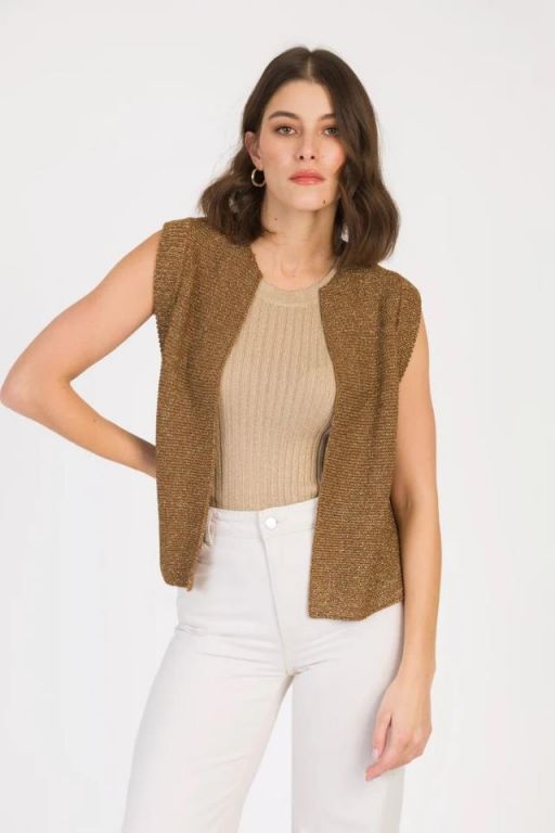 Sin mangas, con cuello redondo y ribete de canalé.