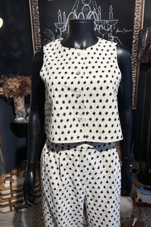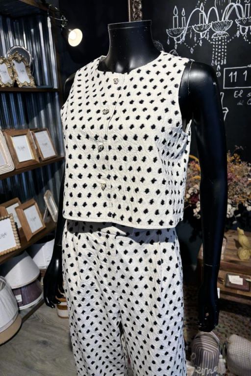 Chaleco sin mangas con estampados geométricos en contraste y cierre de botones