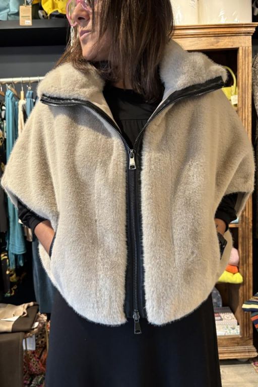 Uter jackets de eco-piel, con corte amplio y mangas cortas que aportan dinamismo. Los detalles en contraste en la cremallera y los bolsillos añade carácter y autenticidad.