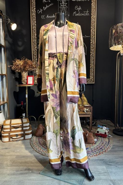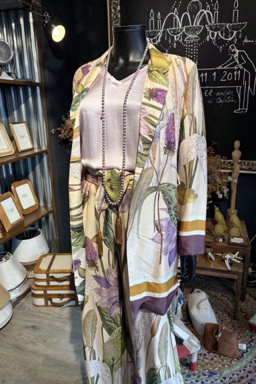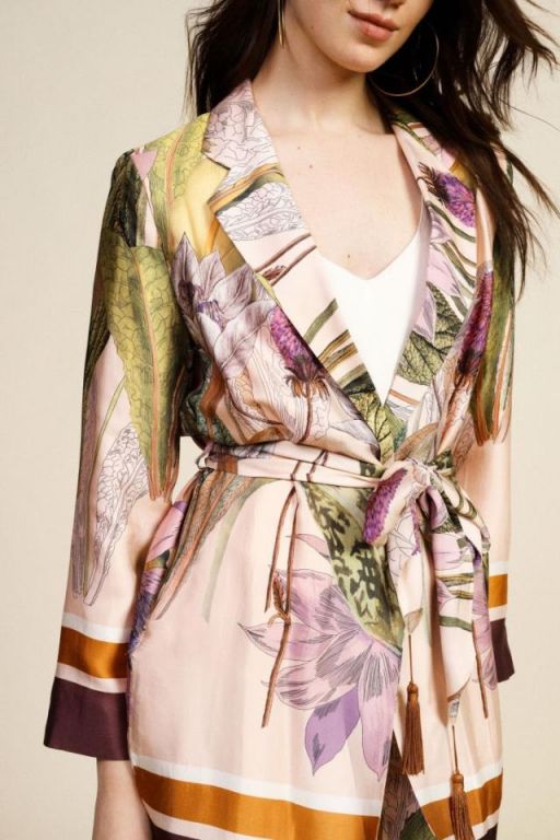 Chaqueta estampada de tejido fluido con cinturón y bolsillos laterales