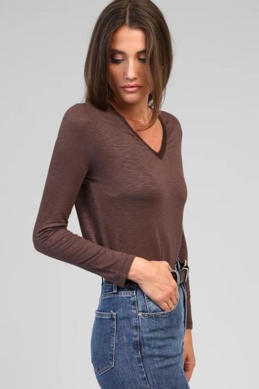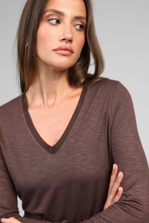 Cuello en V, de maanga larga, punto fino, tejido suave y cálido.