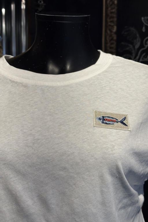 Camiseta sin mangas con cuello redondo, corte recto y holgado con Pequeño motivo de pez bordado en el pecho.