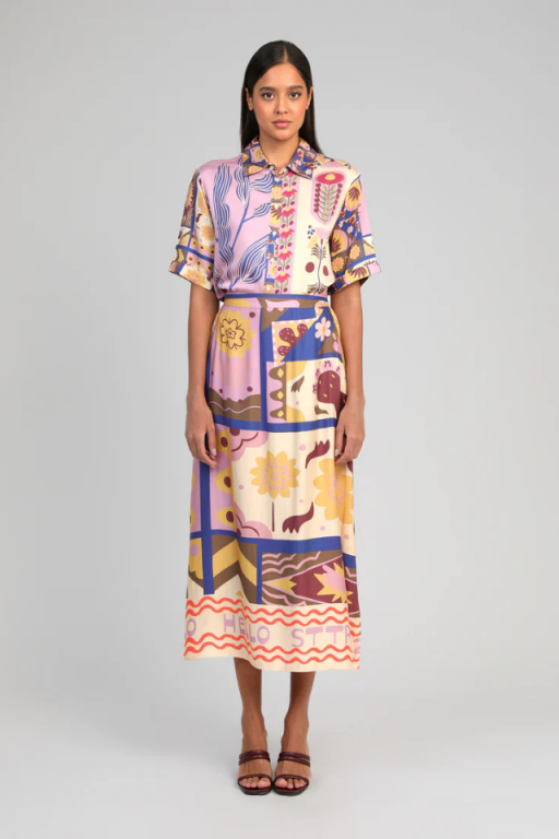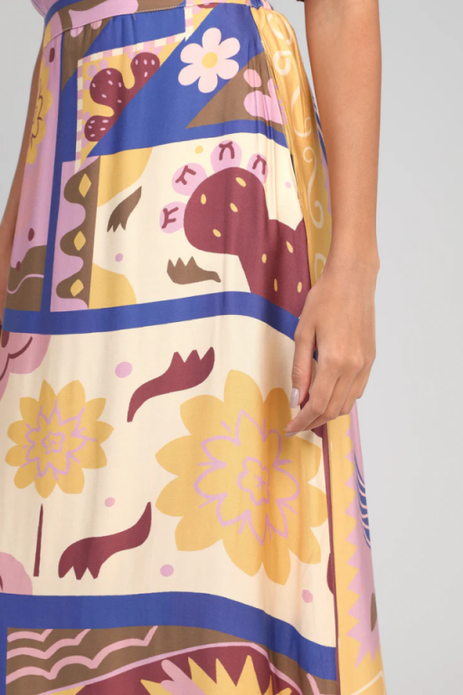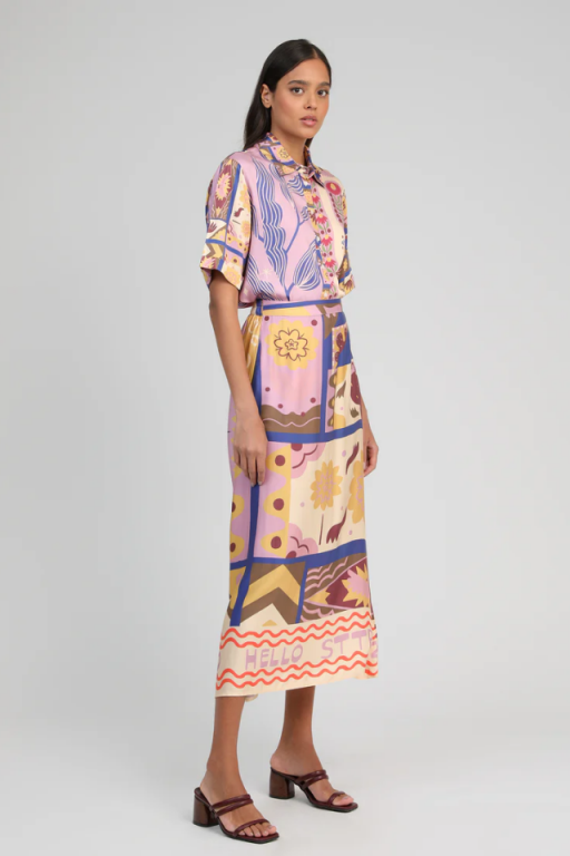 Falda estampada de largo midi, con bolsillos laterales y cinturilla elástica