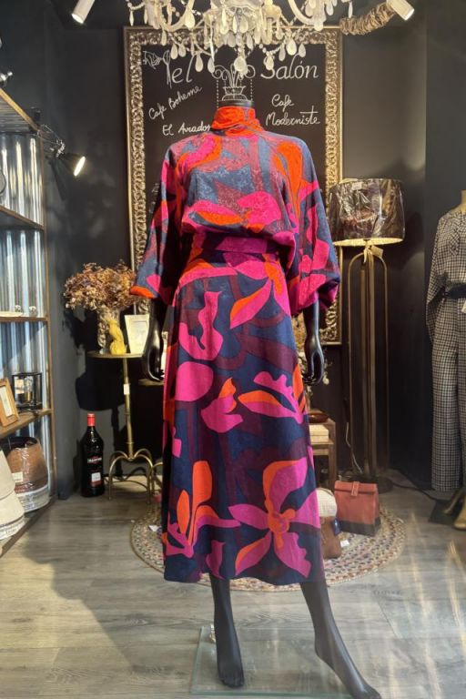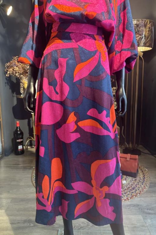 Falda larga de tejido fluido de flores geométricas