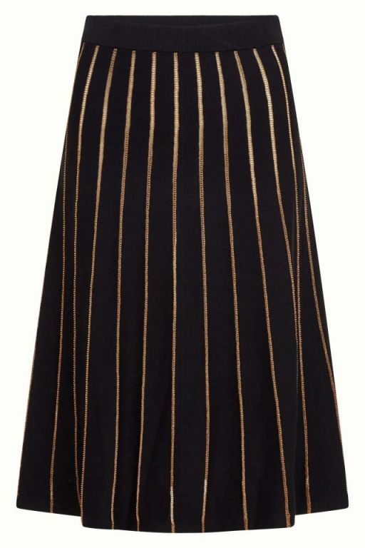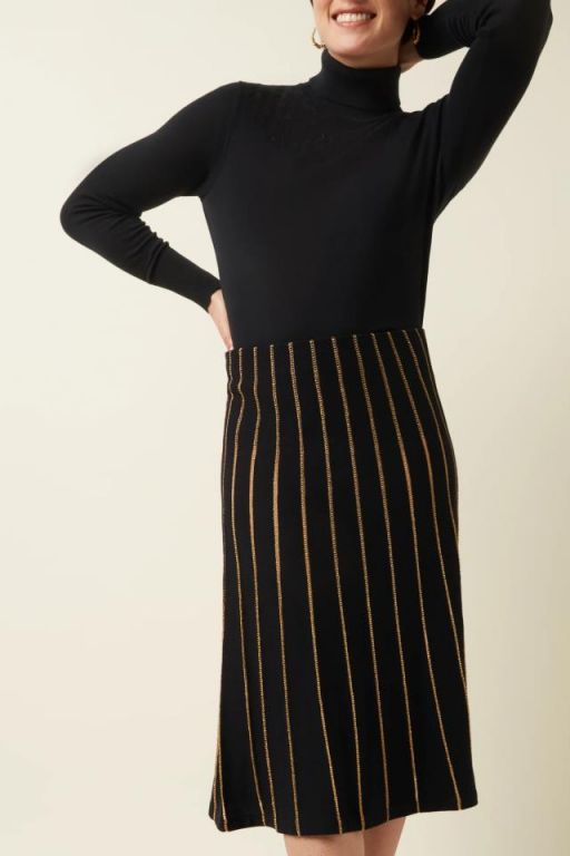 Falda de punto de cintura media con cinturilla elástica y un largo midi acampanado con elegantes rayas.