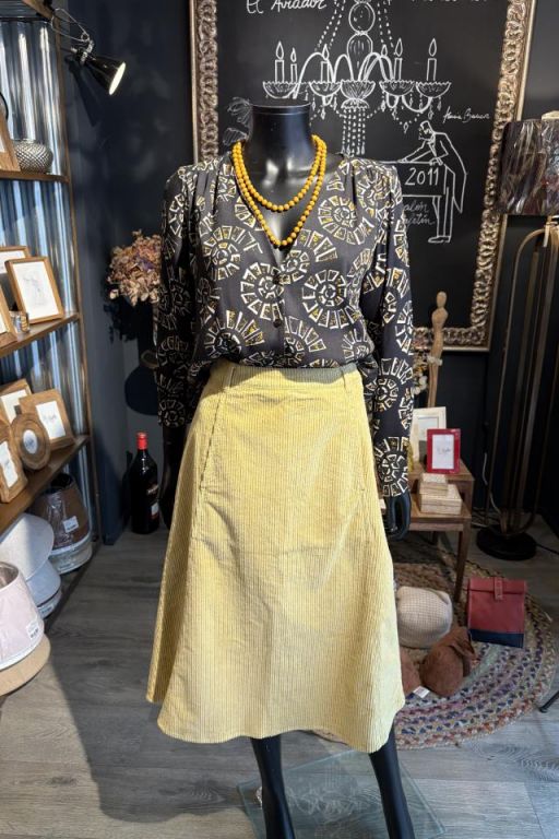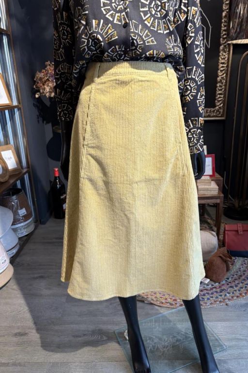 Falda midi de pana con forma de trapecio y bolsillos delanteros