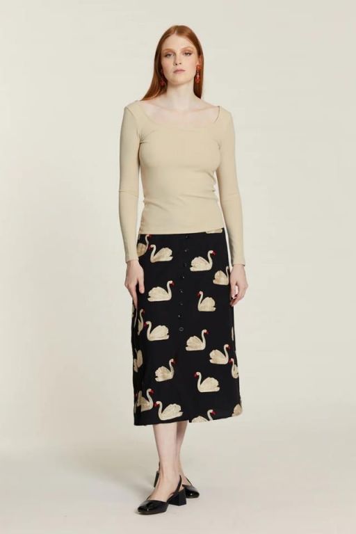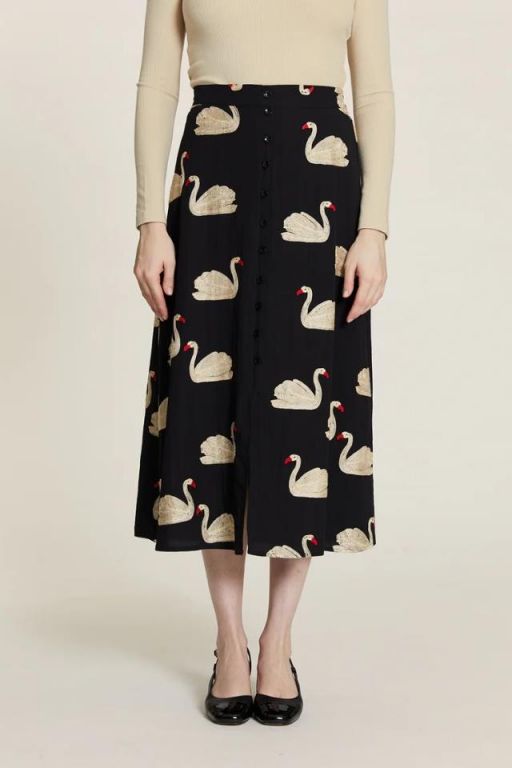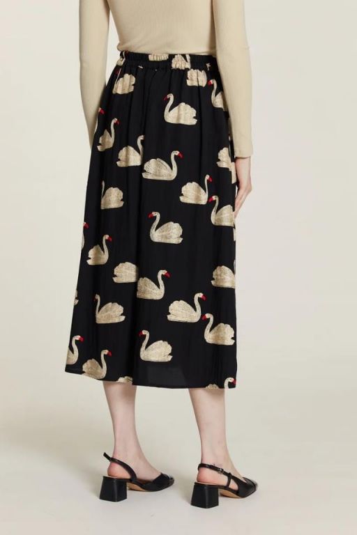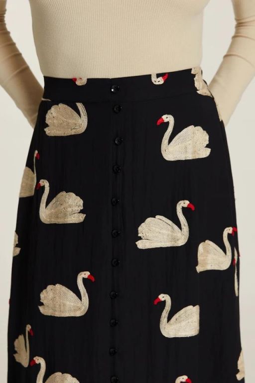 Falda bordado cisnes, con raja delantera, cinturilla elástica por el trasero y por debajo de la rodilla.