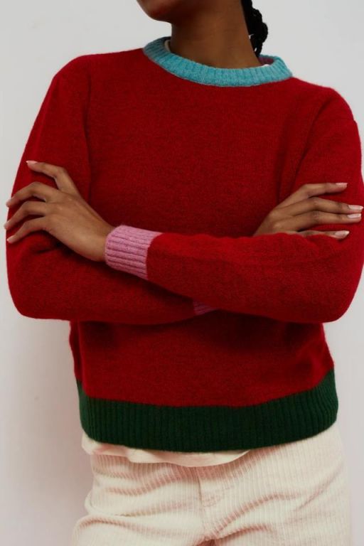 Jersey de lana. Corte recto con manga larga y cuello redondo acabado en canalé