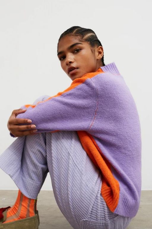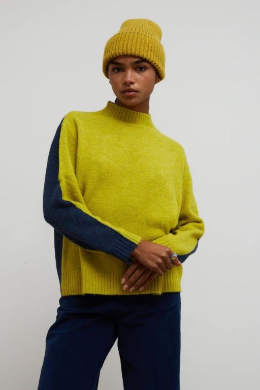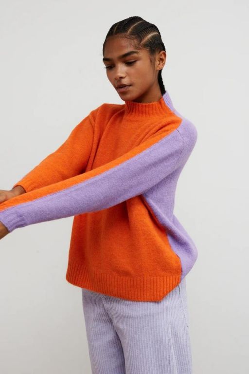 Jersey bicolor.Cuello redondo chimenea. Corte recto y cómodo