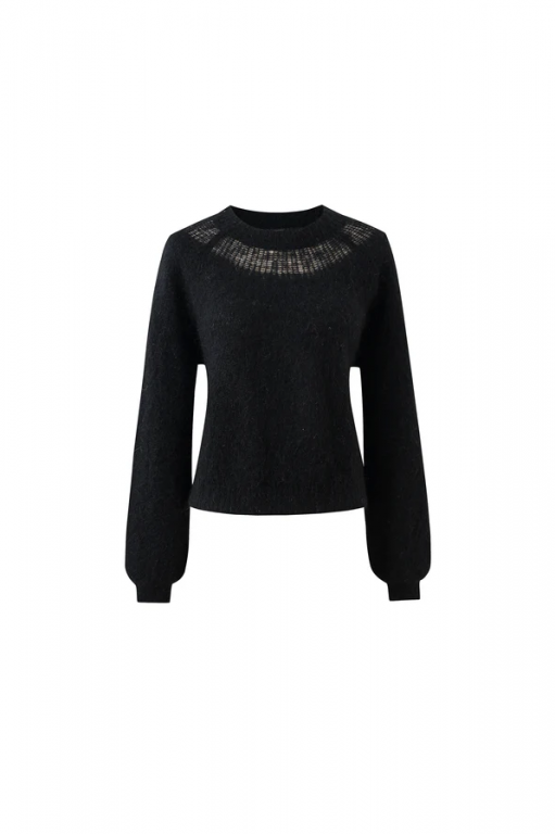 Suéter de lana y mohair de cuello redondo. Punto suave y cálido