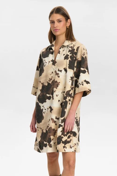 Vestido midi con estampado de vaca y cuello en V