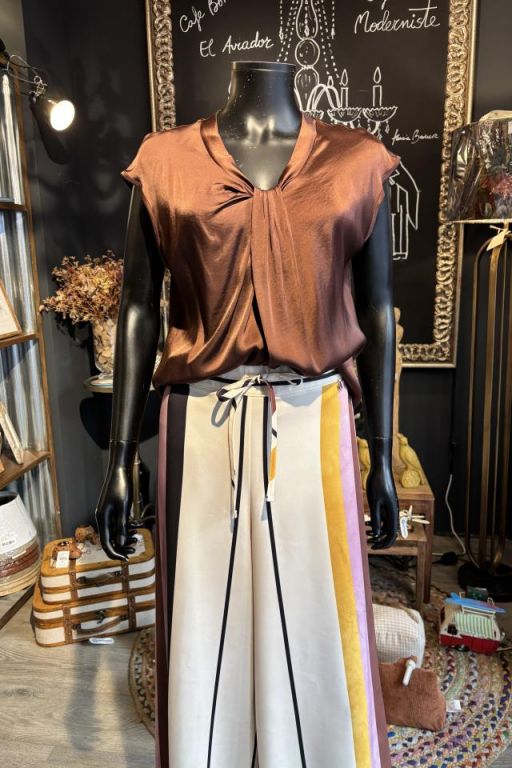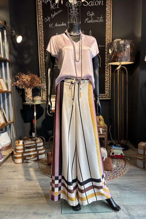 PAntalón recto de vestir con cinta en cintura y elástico en trasera