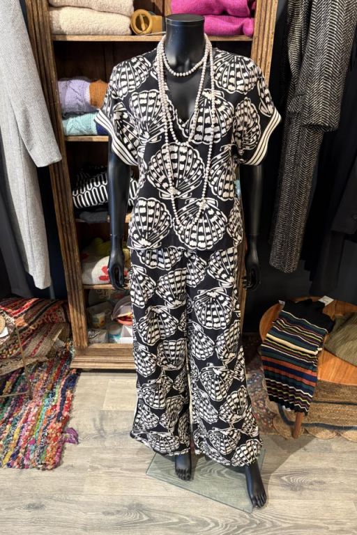 Pantalón estampado de pierna recta con cinta lateral de rayas en contraste