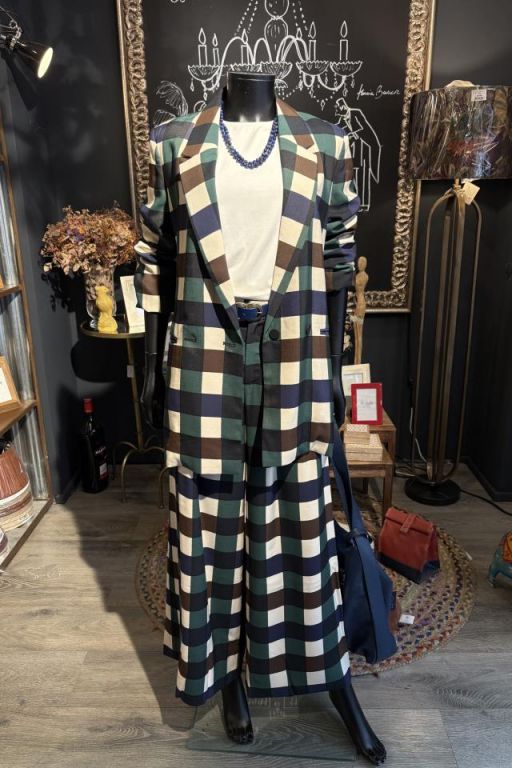 Pantalón palazzo de corte hasta el tobillo. Bolsillos al bies y bragueta con cremallera delantera.