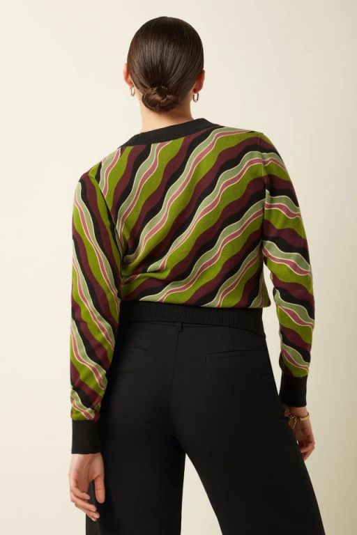 Cárdigan de punto de algodón tiene un ajuste elástico, bordes acanalados, mangas largas, cuello en V y botones para usar fácilmente