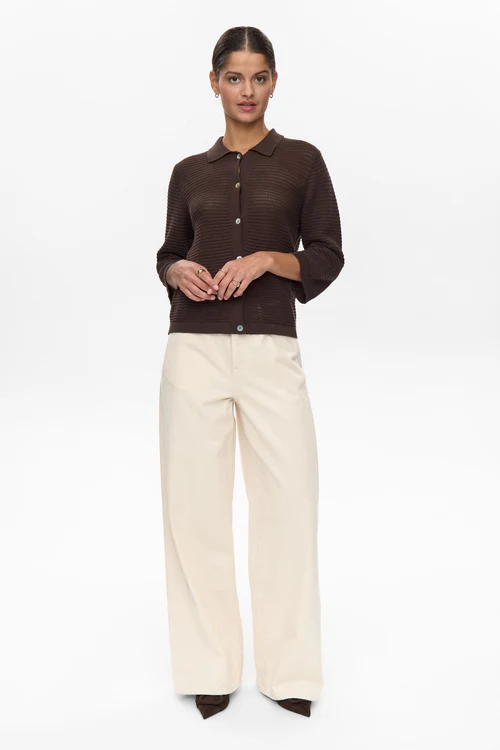 Rebeda cropped de punto perforado con cuello de polo y manga francesa