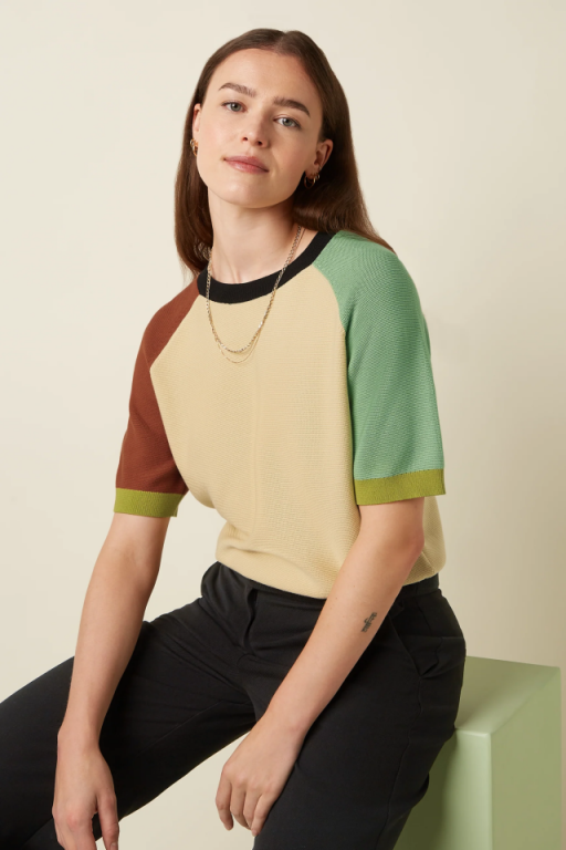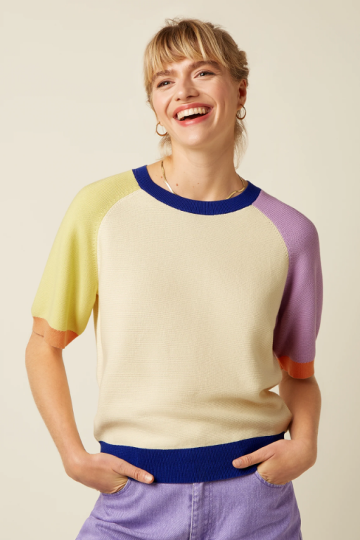 Jersey multicolor con cuello redondo , media manga y corte regular.