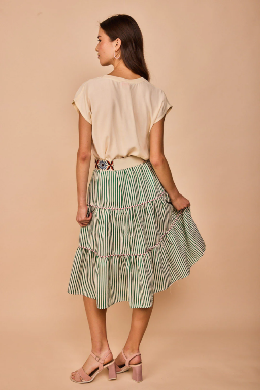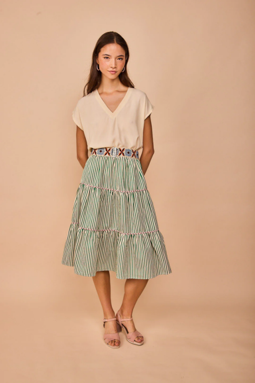 Top liso con escote de pico y mangas cortas.