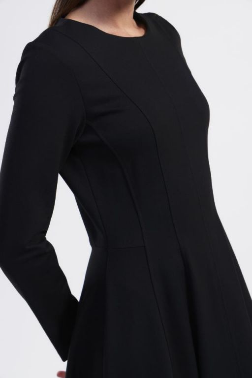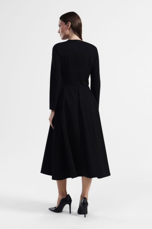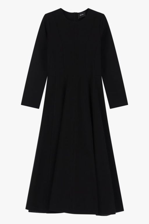 Vestido midi con mangas largas que combina elegancia y comodidad. Su diseño con escote redondo y cierre de cremallera trasera ofrece un look sofisticado.