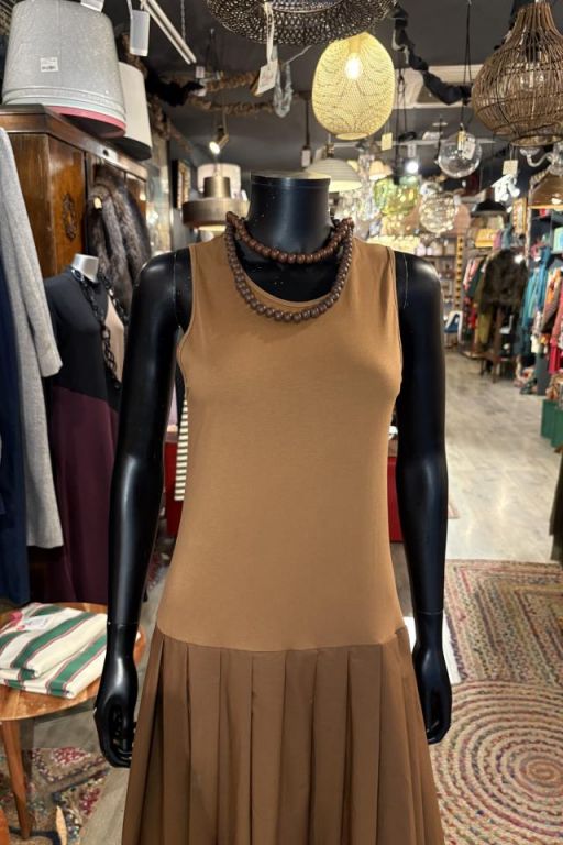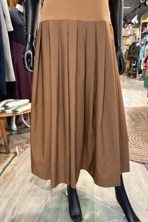 Vestido sin mangas de cuello a la caja con cuerpo de punto y falda plisada en popelín
