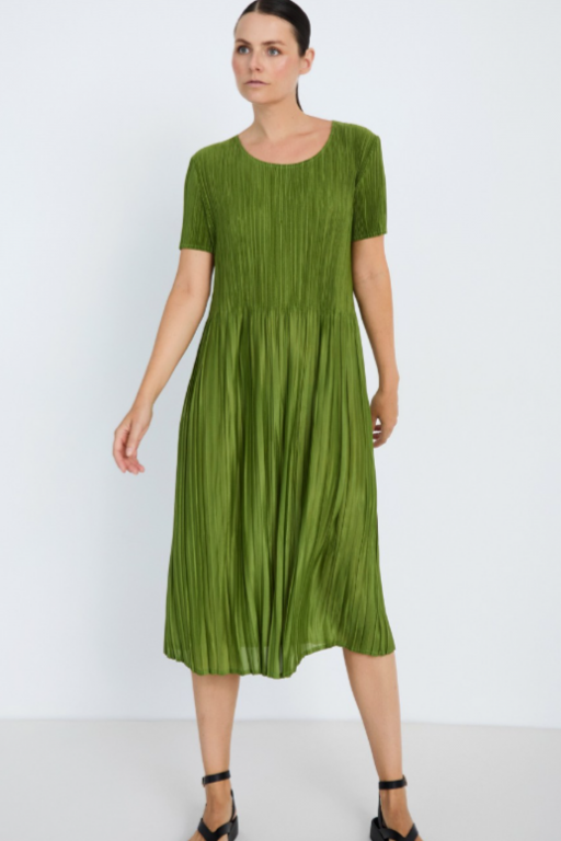 Vestido plisado con manga corta y cuello redondo